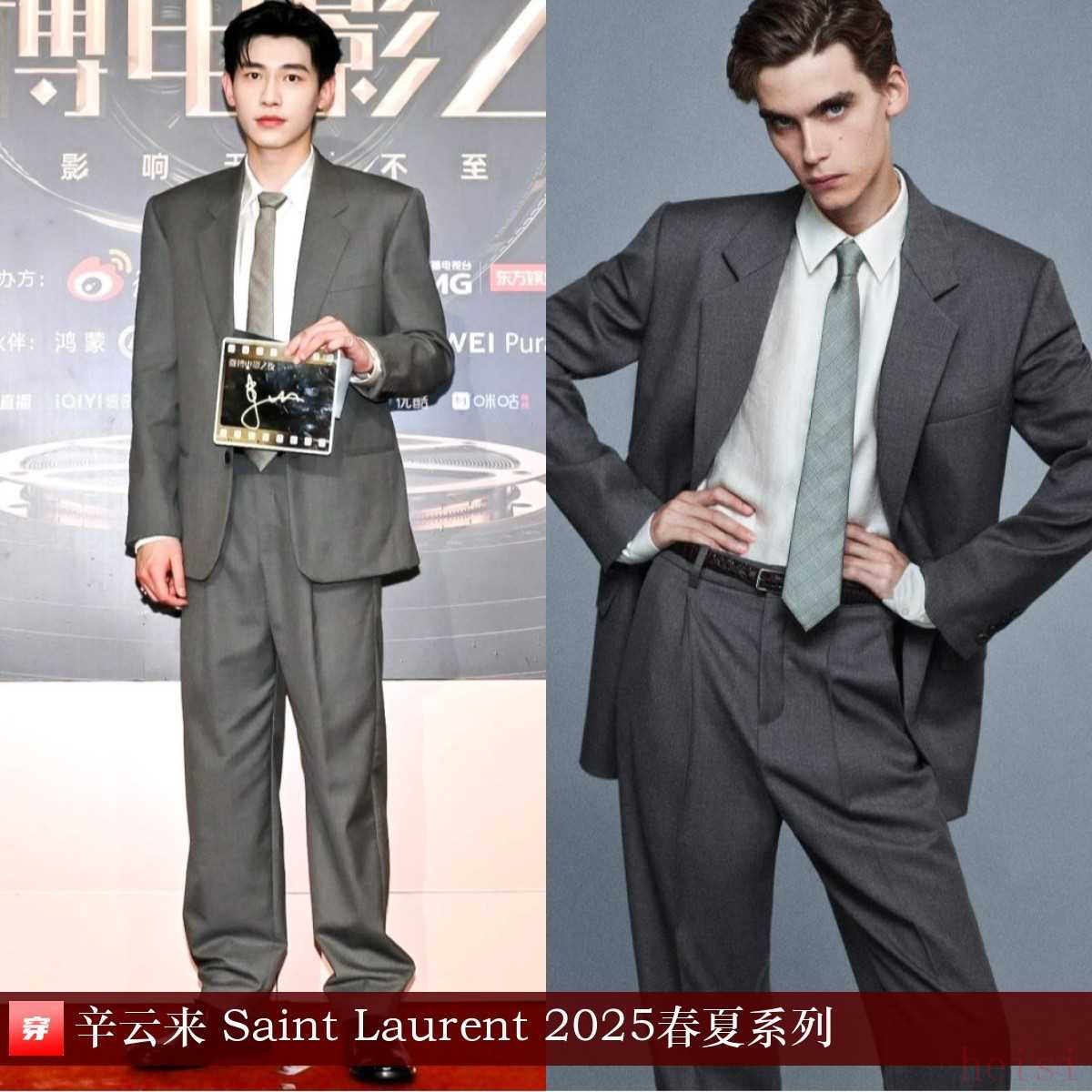 2025微博電影之夜紅毯上的辛云來(lái),灰色西服套裝:Saint Laurent 2025春夏系列。