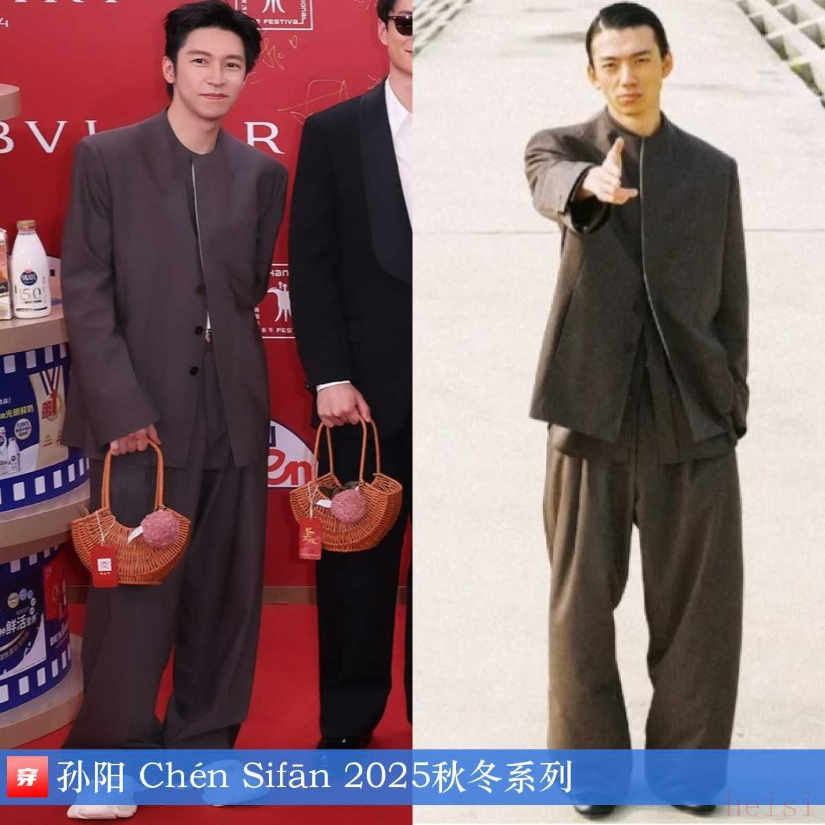 孫陽(yáng)身穿來(lái)自Chén Sifān 2025秋冬系列的深咖色圓領(lǐng)西服套裝亮相第27屆上海國(guó)際電影節(jié)開(kāi)幕式。