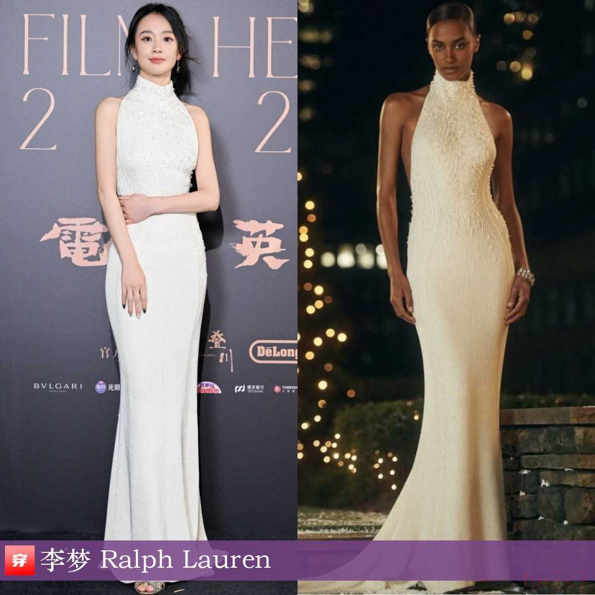 第27屆上海國(guó)際電影節(jié)開(kāi)幕晚宴暨ELLEMEN電影英雄之夜,李夢(mèng)身穿Ralph Lauren的白色釘珠高領(lǐng)挖肩魚尾禮服。