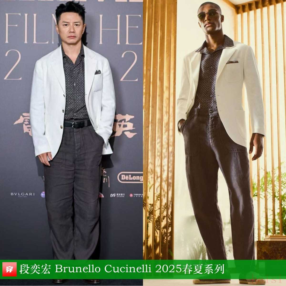 在第27屆上海國(guó)際電影節(jié)開(kāi)幕晚宴暨ELLEMEN電影英雄之夜上,段奕宏穿了一套來(lái)自Brunello Cucinelli 2025春夏系列的白色兩粒扣西裝。