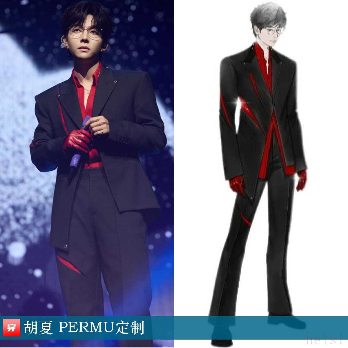 亮相「那些年·時(shí)光放映廳」個(gè)人巡回演唱會(huì)武漢站的胡夏在舞臺(tái)上了一套來(lái)自PERMU定制的紅色襯衣、黑色切割鏤空西服套裝。
