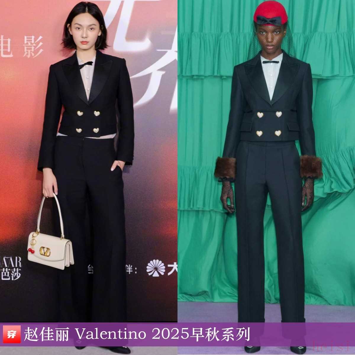 趙佳麗亮相芭莎無(wú)界電影之夜獲得,穿的黑色短款西服套裝來(lái)自Valentino 2025早秋系列。