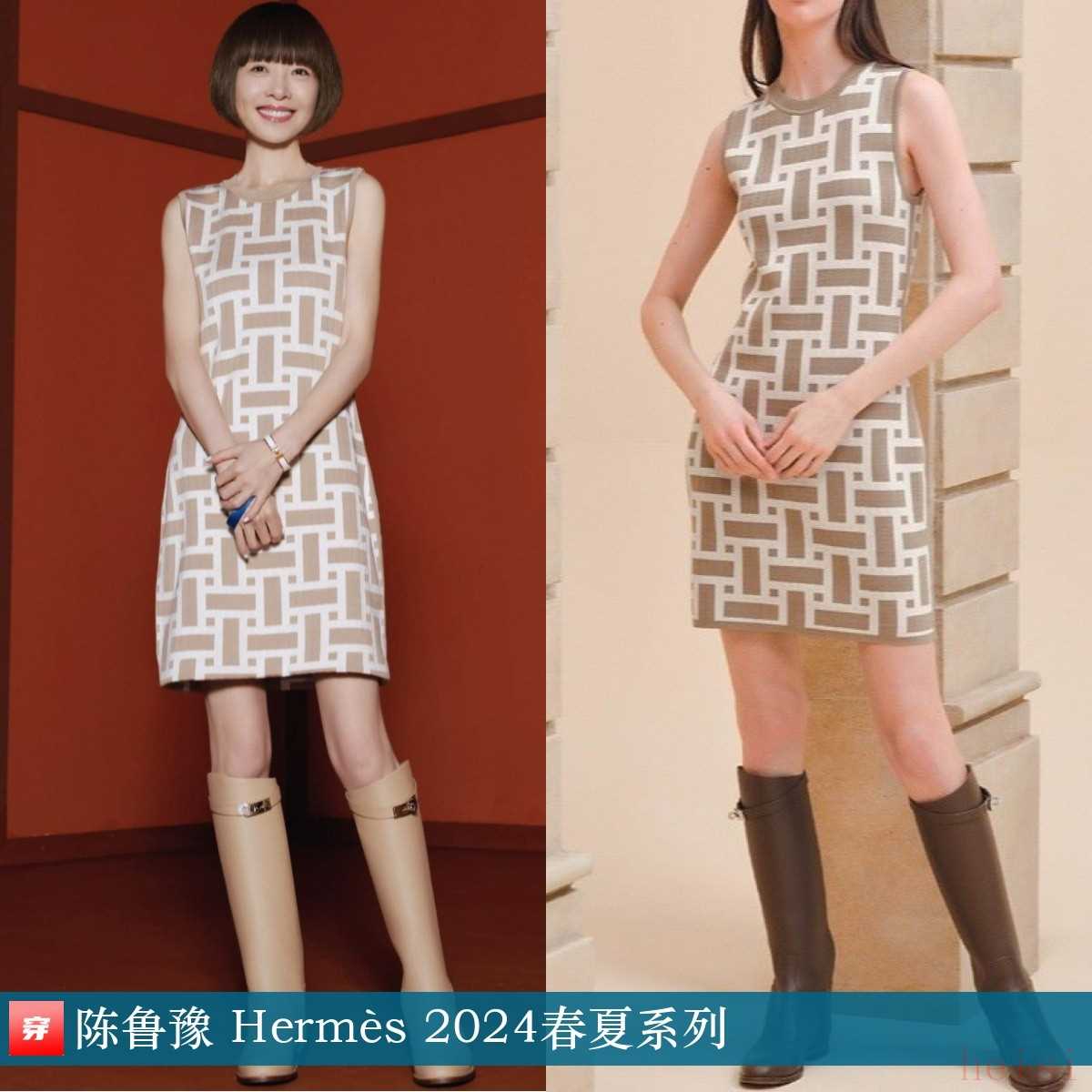 亮相Hermès 2025秋冬秀的陳魯豫這次穿了一套來(lái)自Hermès 2024春夏系列的幾何圖案無(wú)袖連衣裙。