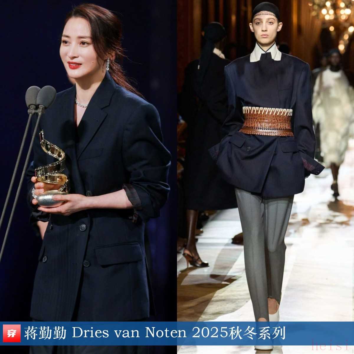 蔣勤勤亮相2025微博電影之夜內(nèi)場(chǎng)活動(dòng),藏青色雙排扣西裝來(lái)自Dries van Noten 2025秋冬系列。