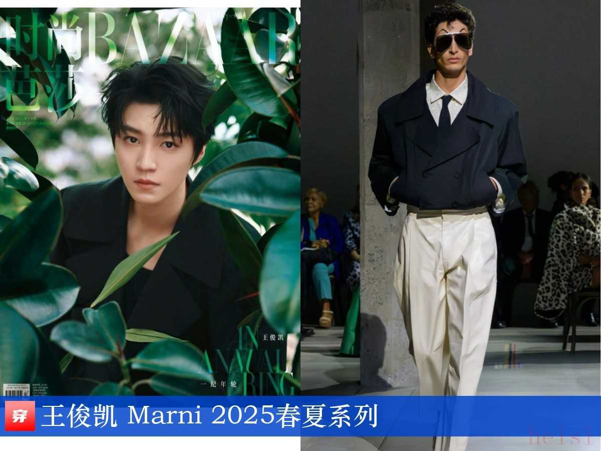 登上《時(shí)尚芭莎》2025年7月刊封面的王俊凱,身穿Marni 2025春夏系列的黑色雙排扣短褲夾克。
