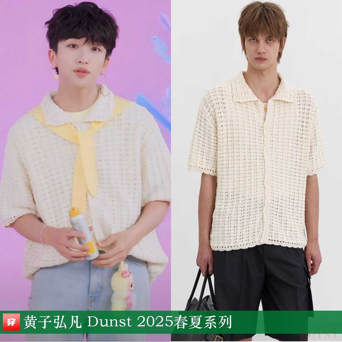 亮相品牌直播活動的黃子弘凡這次穿了一套來自Dunst 2025春夏系列的米色鉤織短袖襯衣。