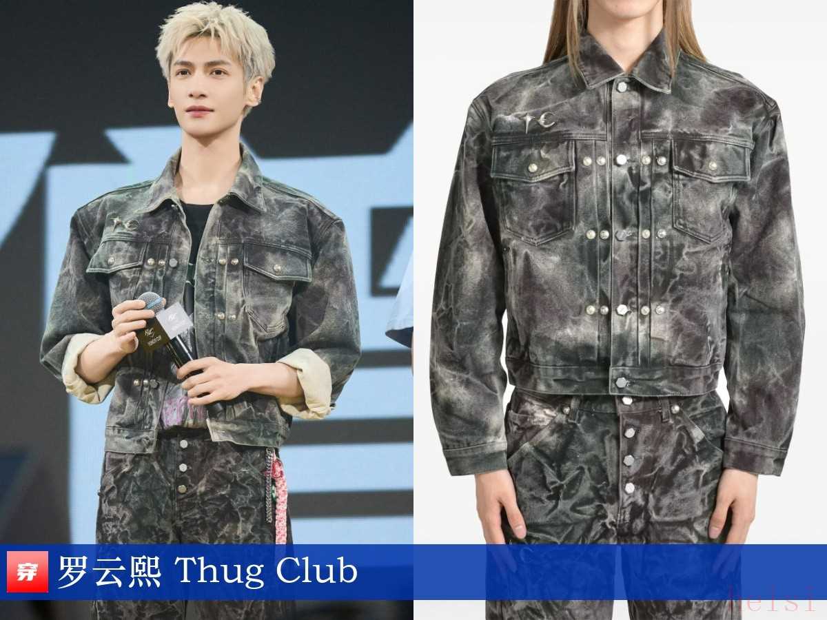 羅云熙身穿來自Thug Club的灰色迷彩牛仔夾克亮相在太原舉行的某游戲活動。