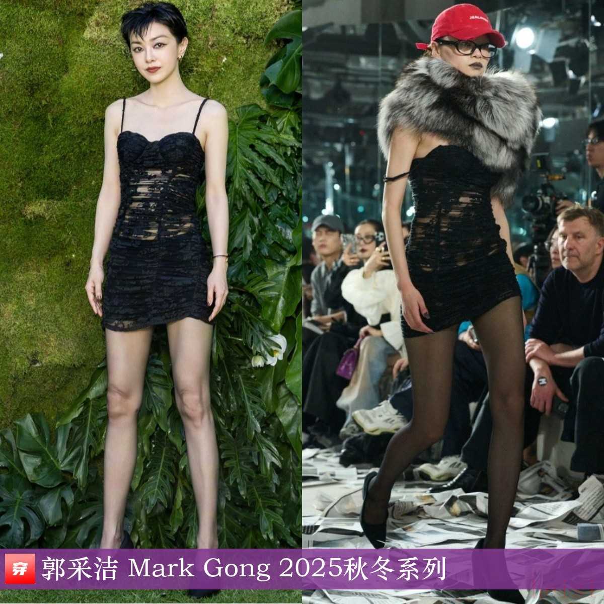 郭采潔在Vogue Vacation潮汐紅毯上穿的黑色蕾絲吊帶裙來自Mark Gong 2025秋冬系列。