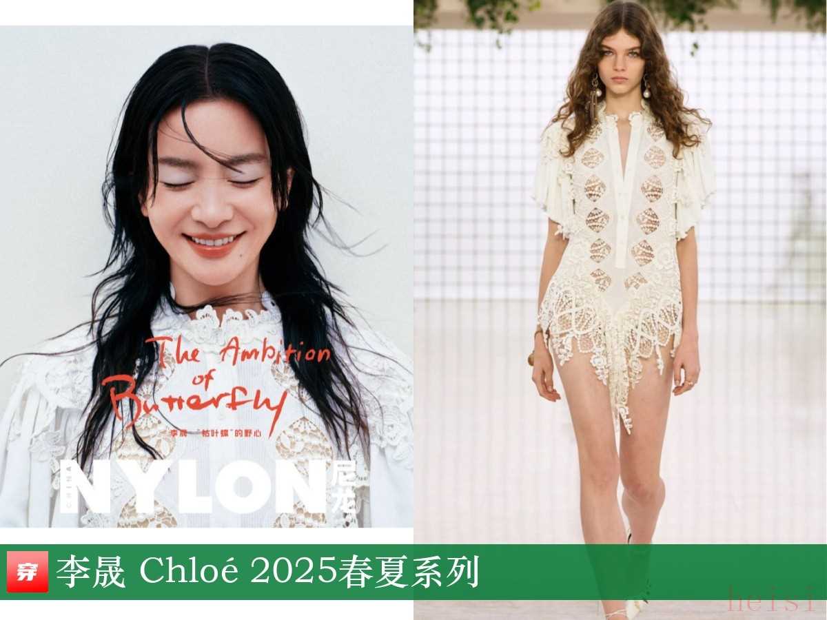 李晟登上《NYLON尼龍》2025年6月刊封面,穿的白色鏤空刺繡連衣裙來自Chloé 2025春夏系列。