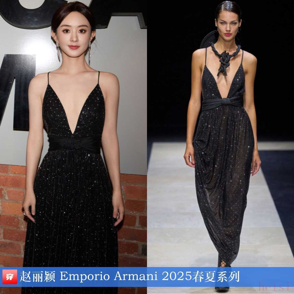 趙麗穎亮相了第24屆翠貝卡影視節(jié)的點映活動,這件黑色深V亮片吊帶裙來自Emporio Armani 2025春夏系列。