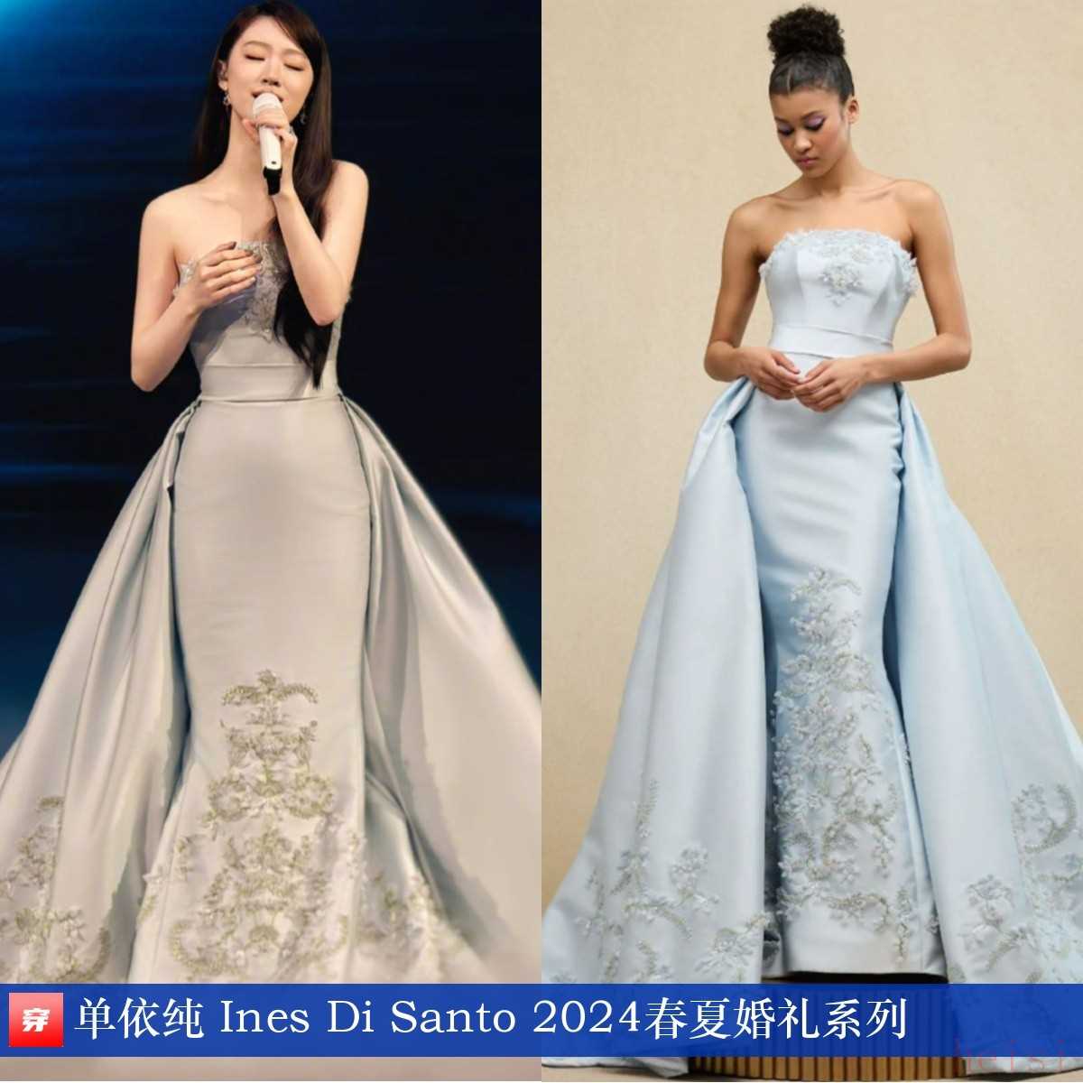 單依純身穿來自Ines Di Santo 2024春夏婚禮系列的藍色鉆飾抹胸禮服亮相在上海舉行的手機發(fā)布會。
