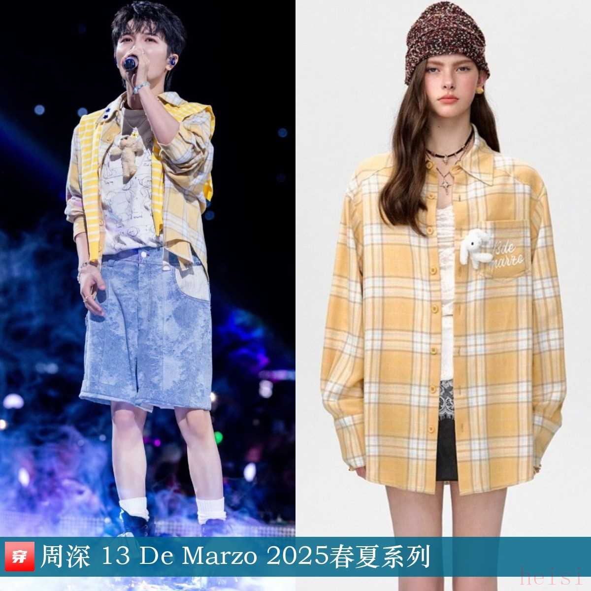 2025年仲夏畢業(yè)歌會上的周深,淺橙色格紋襯衣:13 De Marzo 2025春夏系列。