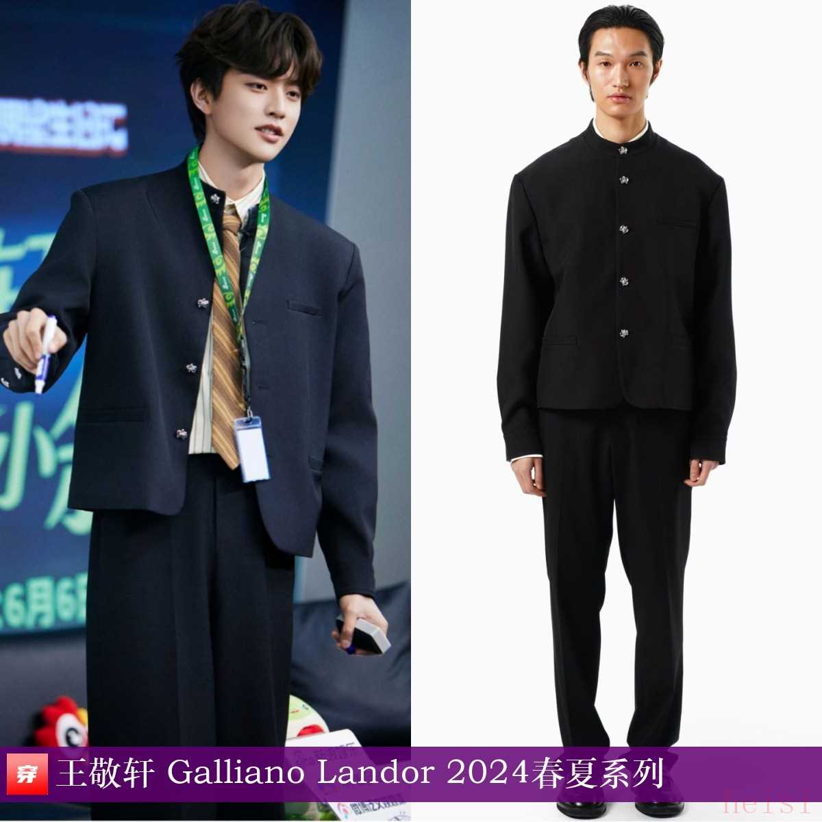 身穿Galliano Landor 2024春夏系列黑色中式立領夾克亮相掃樓活動的王敬軒。