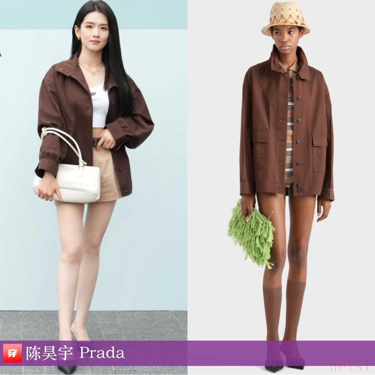 陳昊宇亮相某品牌活動,這次她穿的棕色夾克來自Prada。