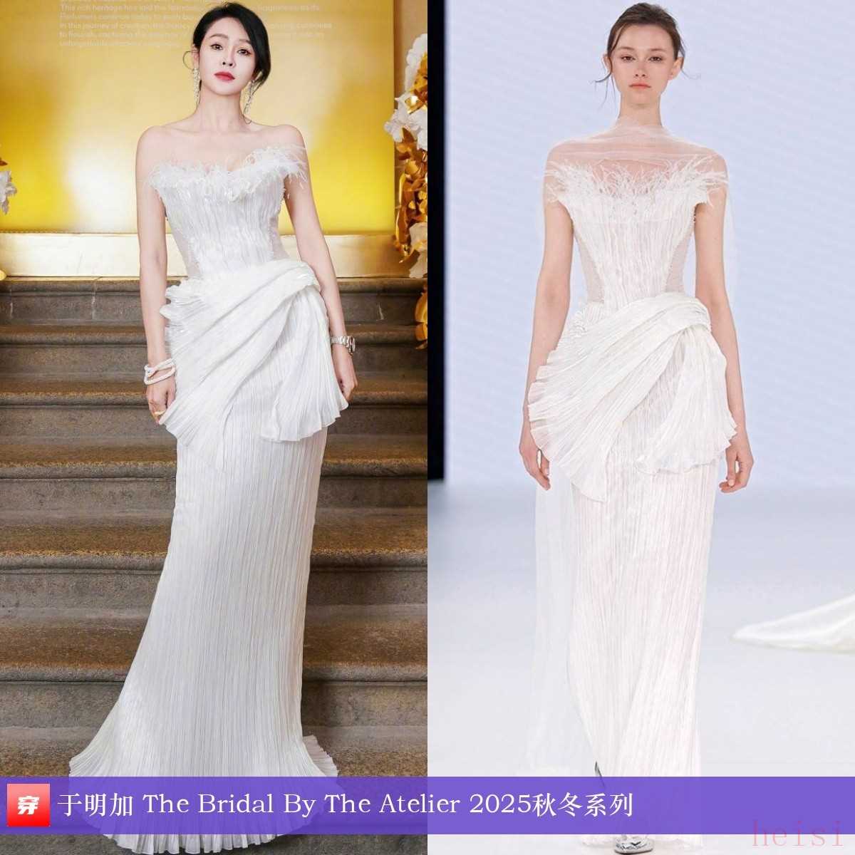 于明加身穿來自The Bridal By The Atelier 2025秋冬系列的白色褶裥抹胸禮服亮相「探尋香水的盡頭」香氛藝術展活動。