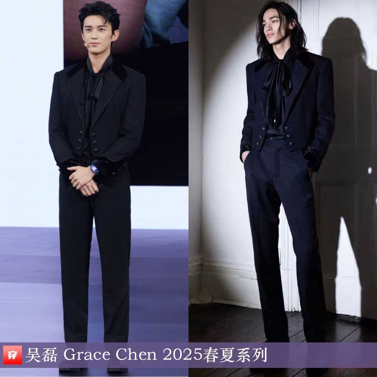 吳磊亮相某手機發(fā)布會,他穿的黑色短款西裝來自Grace Chen 2025春夏系列。