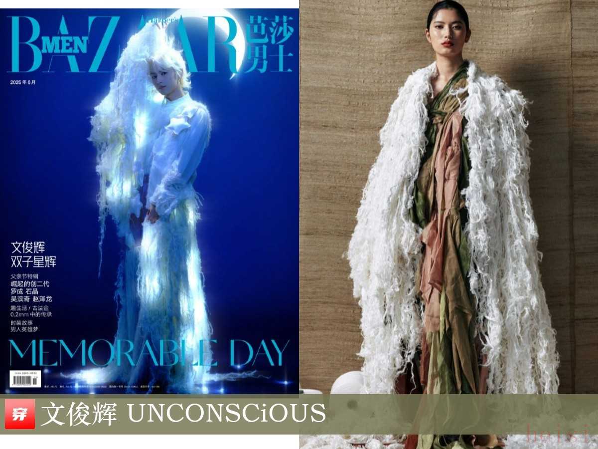 文俊輝亮相《芭莎男士》2025年6月刊封面,這套苧麻原纖維概念款斗篷來自UNCONSCiOUS。