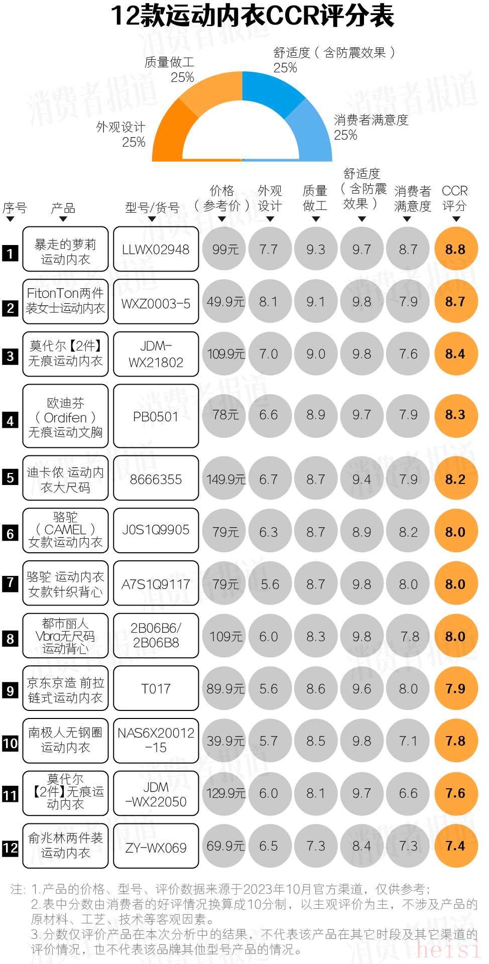 在本次口碑報告中,排名第一的是暴走的蘿莉運動內(nèi)衣(型號/貨號LLWX02948),CCR評分8.8分。