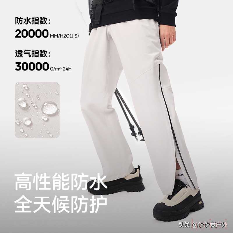 雙側(cè)貫通式拉鏈,穿戴冰爪也可帶鞋穿脫,方便更快的雪線換裝。以應(yīng)對更高海拔的環(huán)境與氣候。也便于行進過程中的散熱透氣。eVent藍(lán)標(biāo) 防水科技,實測防水等級高達(dá)20000,具備暴雨級防水。3L全褲壓膠,全褲拼接縫均采用1.5mm防水膠條。高溫?zé)釅?,工藝?yán)苛,壓膠工整,穿著更舒適。耐磨抗撕裂,75D高強度面料,專業(yè)檢測高達(dá)30000次的摩擦無破損。腳口拼接CORDURA,防止冰爪刮損,更適配登山滑雪等多種戶外運動。8、【山殼】伯希和戶外硬殼沖鋒褲男女防風(fēng)騎行登山褲壓膠防水長褲子