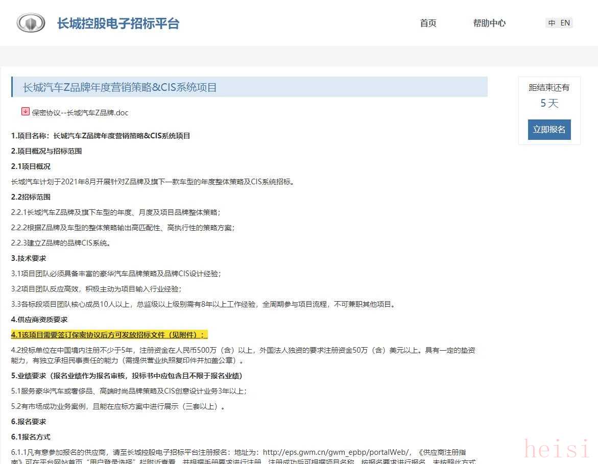 長城汽車集團官網(wǎng)“Z品牌”招標公告