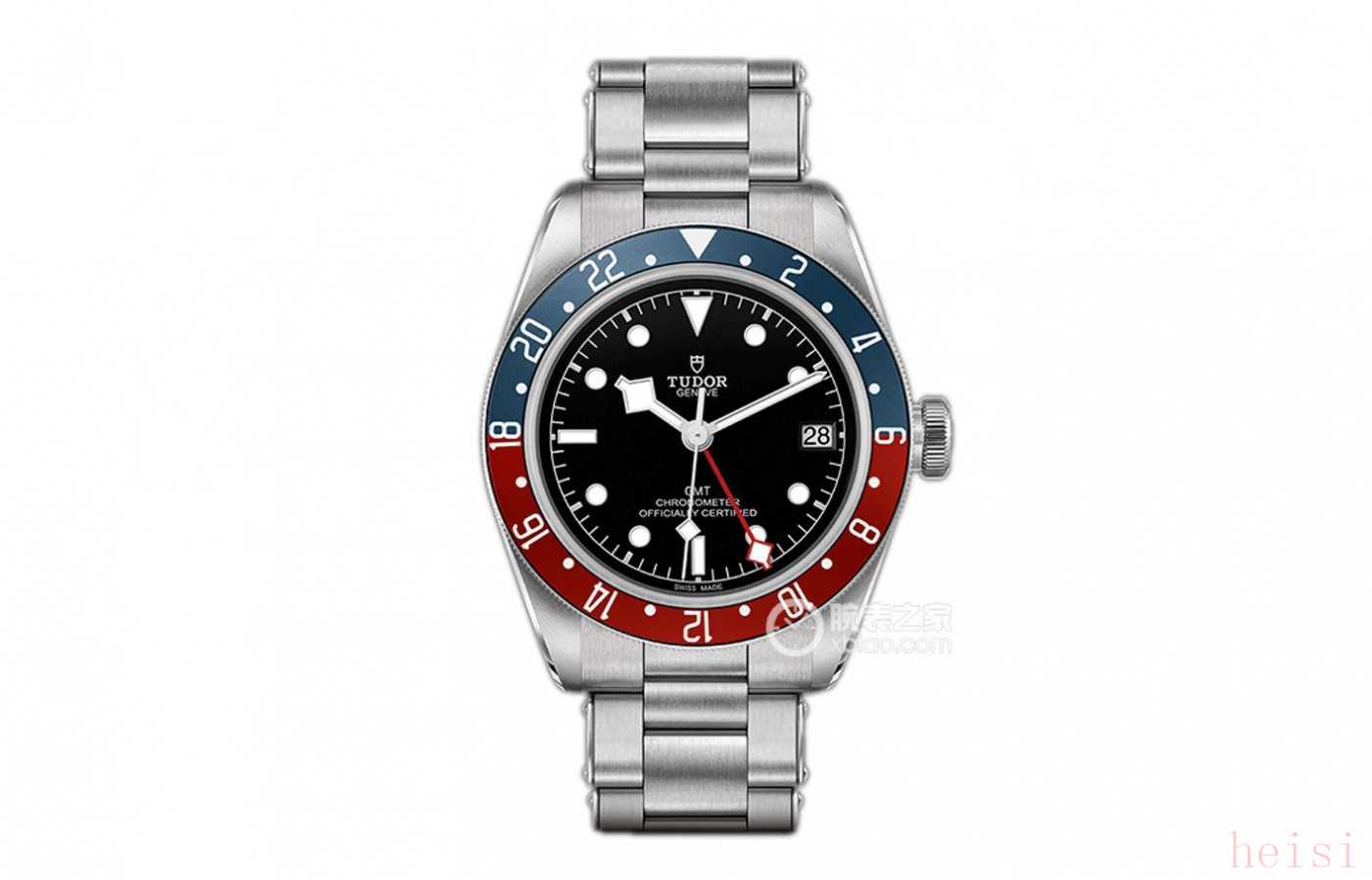 腕表點(diǎn)評(píng):五萬(wàn)元以內(nèi)的價(jià)位中想買一款雙色圈,那一定是帝舵,想買一款最經(jīng)典的配色,那一定是紅藍(lán)圈,而把這些特征加在一起就只能是帝舵碧灣系列M79830RB-0001腕表(碧灣可樂(lè)圈)??蓸?lè)圈是GMT腕表中最經(jīng)典的設(shè)計(jì),而這種搭配也正是勞力士Ref.16710的開山鼻祖之作,雖說(shuō)五萬(wàn)價(jià)位買勞不可能,但是買它的兄弟品牌帝舵可樂(lè)圈不僅同氣連枝,更是最純正血液的“傳承”。41毫米的表殼采用磨光及磨砂不銹鋼雙重打磨,厚度為14.6毫米。啞光酒紅色及藍(lán)色陽(yáng)極氧化鋁字圈的雙向旋轉(zhuǎn)外圈實(shí)用紅色指針特殊指示,絕對(duì)經(jīng)典。雙色圈的中間的表盤上使用的黑色盤面,三點(diǎn)位處設(shè)置有日歷窗口,內(nèi)部搭載帝舵原廠MT5652型自動(dòng)上鏈機(jī)械機(jī)芯,通過(guò)瑞士天文臺(tái)認(rèn)證(COSC),具備雙向擺陀系統(tǒng),搭配非磁性硅游絲,振頻為28800次/時(shí),約70小時(shí)的動(dòng)力儲(chǔ)備。以及還帶有200米的防水能力。