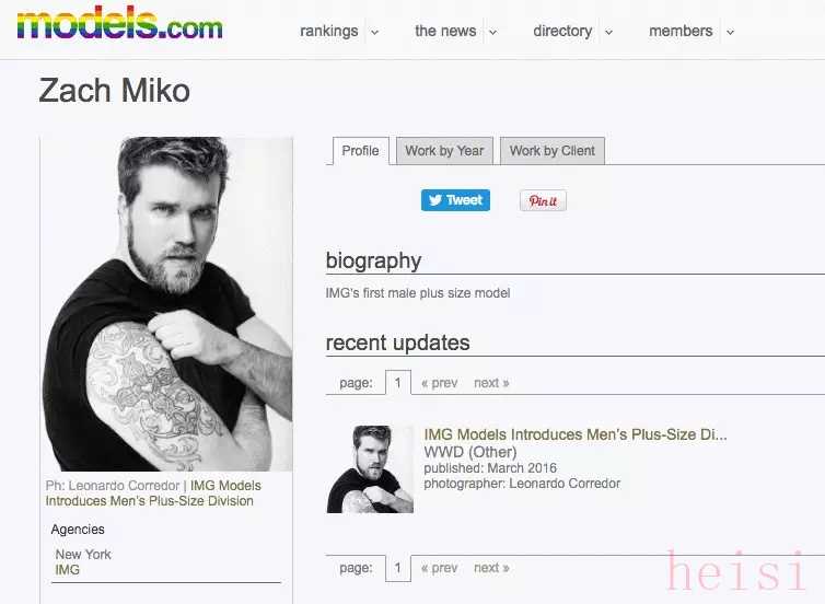 不查不知道,一查夏一條,他的名字叫Zack Miko,也是世界上第一胖模