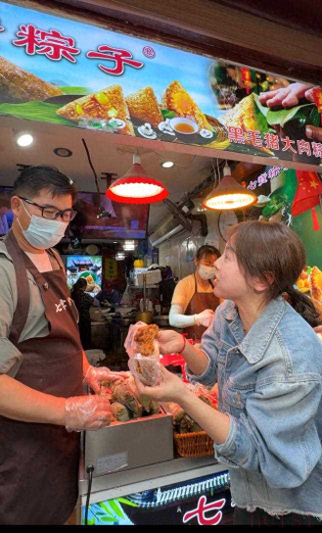 朱央的父母也是使用抖音消費(fèi)的“新網(wǎng)民”。小時(shí)候,每逢開心的日子,他們帶著朱央在街頭尋覓美食,吃洪長興的羊肉串、王家沙的青團(tuán)、沈大成的粽子,為朱央留下最初的美食記憶。隨后四十年,這片土地上的美食文化不斷生長,成為市民生活的生動(dòng)注腳。