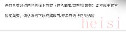 直到現(xiàn)在,在其官網(wǎng)也能看到一句:任何含有以純產(chǎn)品的線上商家(包括淘寶/京東/抖音等)均不屬于官方購買渠道,請認(rèn)準(zhǔn)線下以純旗艦店/專賣店進(jìn)行正品選購。