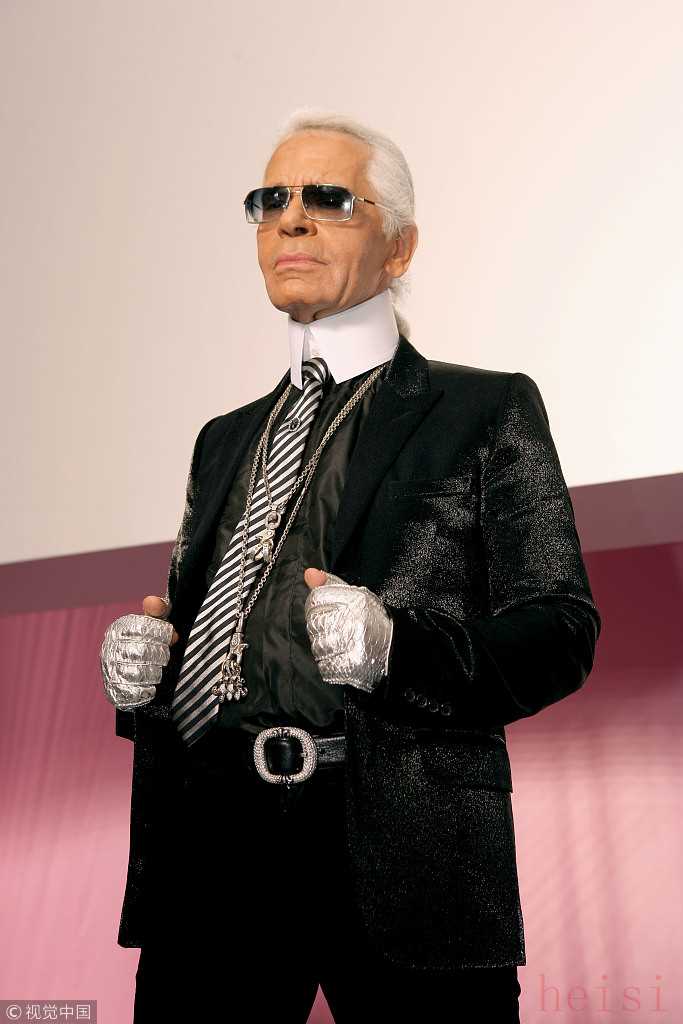 同安娜?溫圖爾特一樣,Karl Lagerfeld也有自己偏愛的造型:黑色窄身西裝,露指手套,幾枚戒指,常年戴的黑色墨鏡及銀色馬尾。