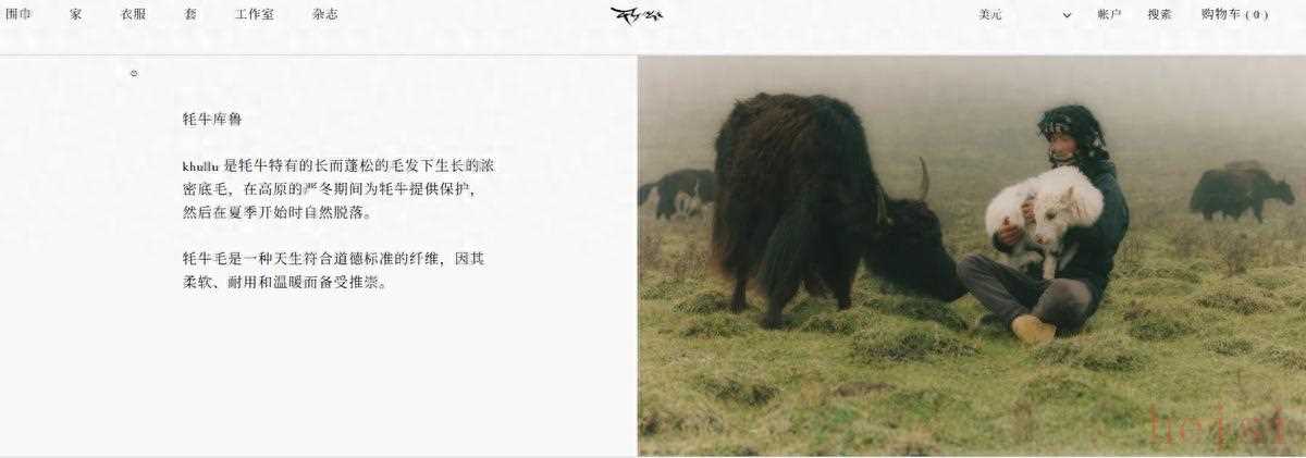 2007年,美國女孩Dechen Yeshi與母親Kim Yeshi在甘肅省甘南藏族自治州仁多瑪村創(chuàng)立了Norlha品牌,其名字在藏語中意為“神賜的財(cái)富”,也是藏人對牦牛的稱呼。品牌以使用自然脫落的牦牛絨毛(Khullu)為原料,堅(jiān)持傳統(tǒng)手工制作和尊重自然為核心價(jià)值。