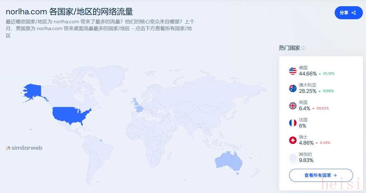 在美國,norlha.com的排名為第763886位,顯示出其在美國市場的良好表現(xiàn),而美國也是其主要流量來源國家之一,占比達(dá)44.66%,此外,澳大利亞也是其重要的流量來源國,占比28.25%,這表明其在這兩個(gè)國家的品牌影響力和市場滲透力較強(qiáng)。