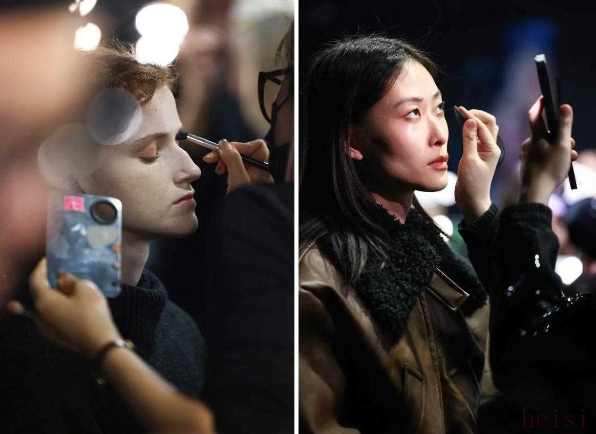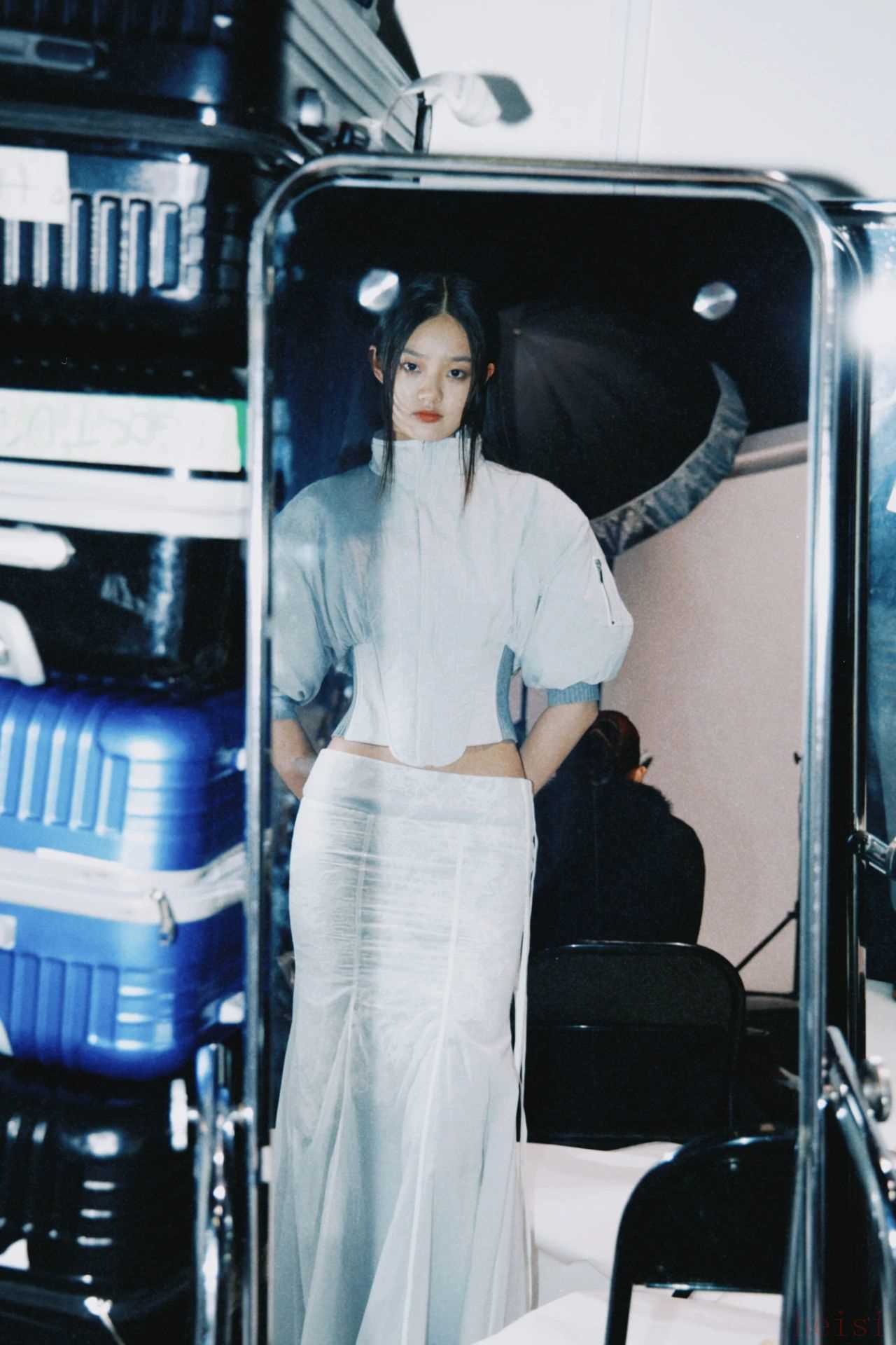 僅從上海時(shí)裝周的秀場(chǎng)官方圖片來(lái)看,也是最近幾季,我們看到過的物料最豐富的品牌之一。涵蓋了化妝間、等候進(jìn)場(chǎng)、秀后等多個(gè)環(huán)節(jié),還有不少膠片風(fēng)格質(zhì)感的創(chuàng)作以及產(chǎn)品的局部特寫。