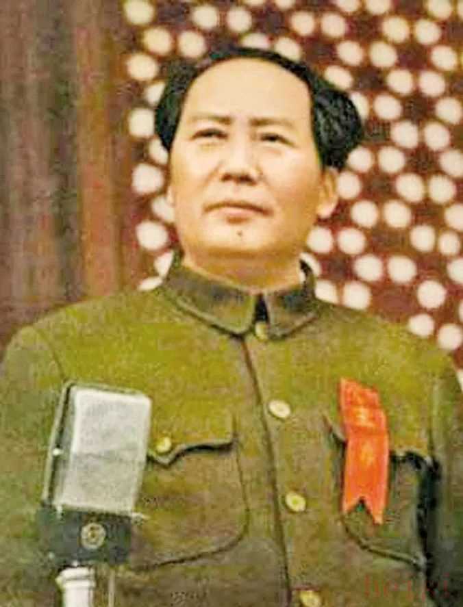 開國大典上,毛澤東身穿中山裝站在天安門城樓上