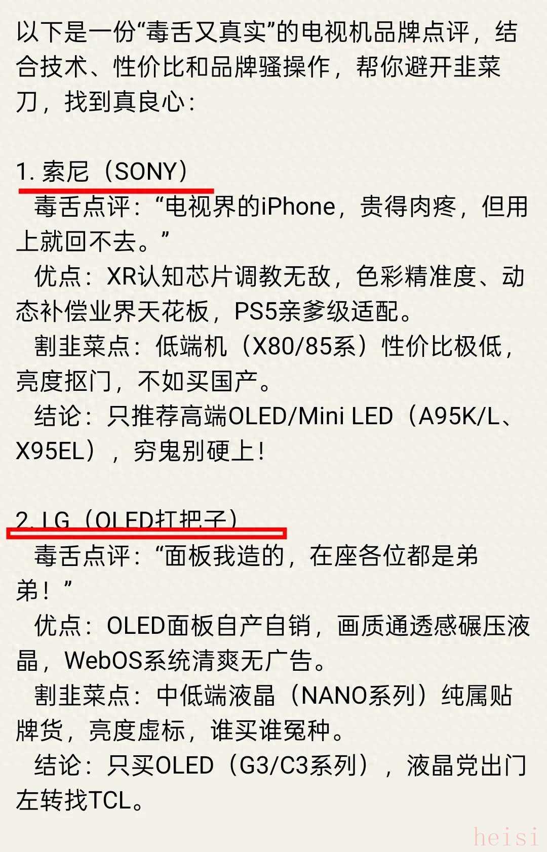 DeepSeek毒舌點(diǎn)評(píng):電視機(jī)品牌排名,良心與割韭菜大揭秘!
