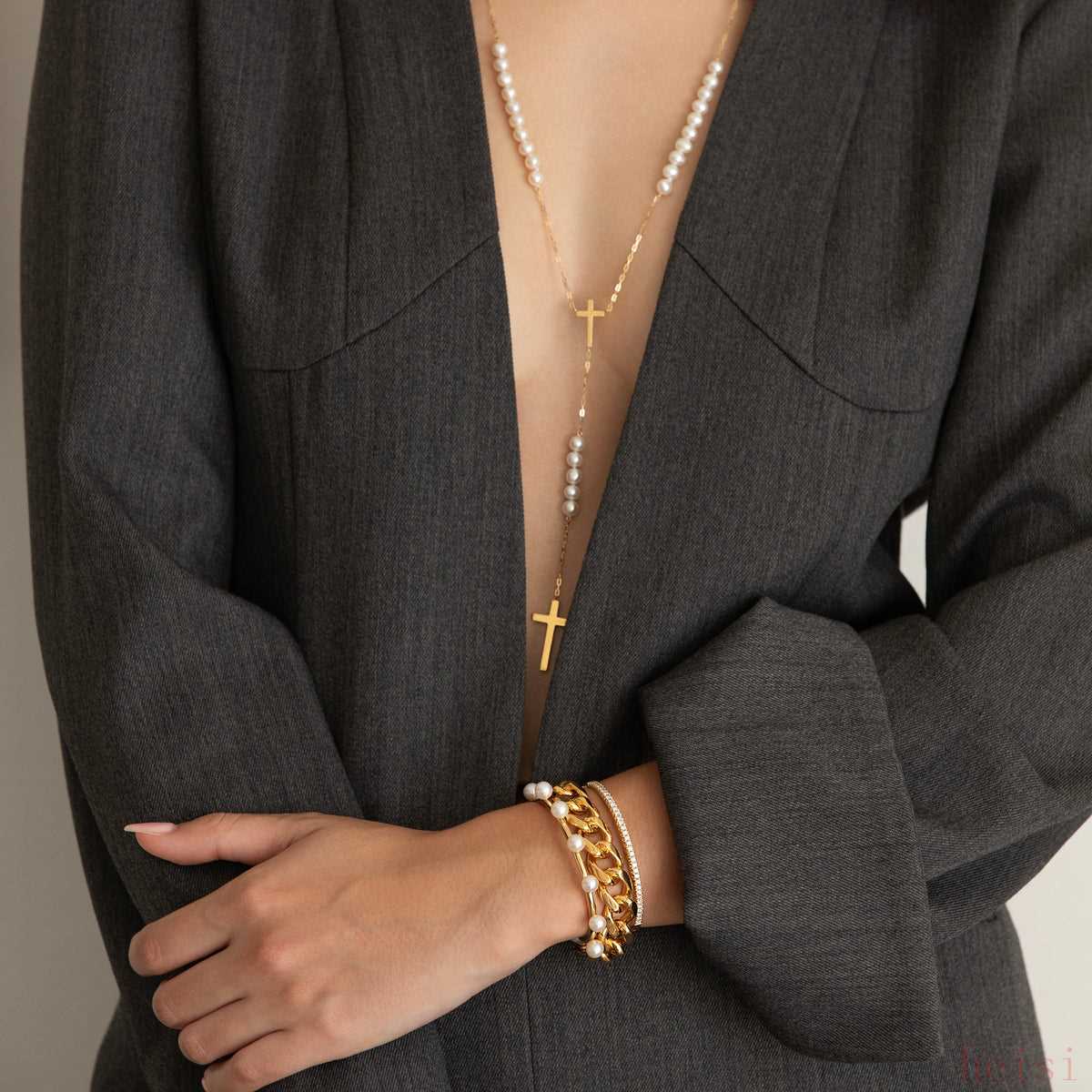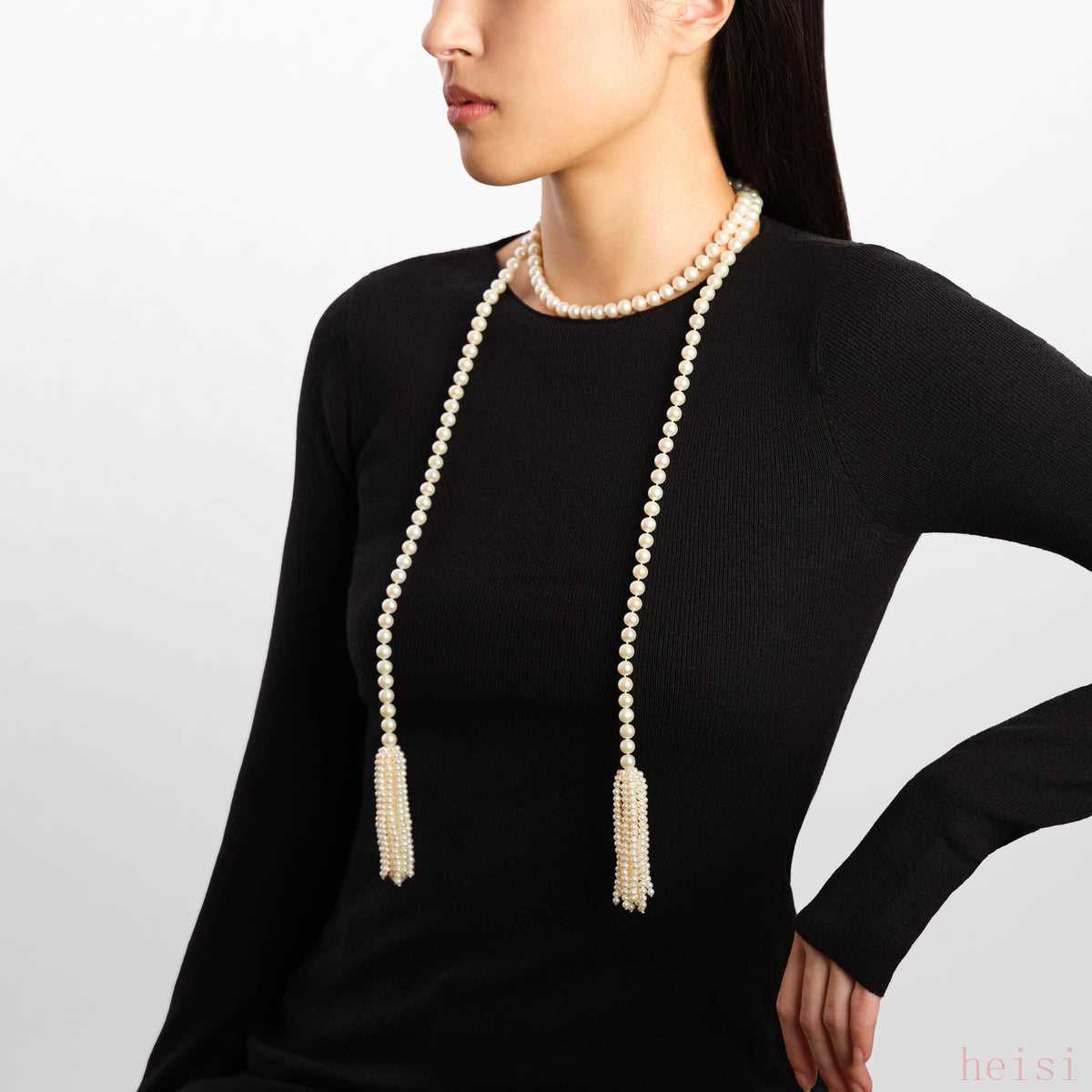 雙流蘇珍珠項(xiàng)鏈,總長約 126 厘米、流蘇部分約 7 厘米