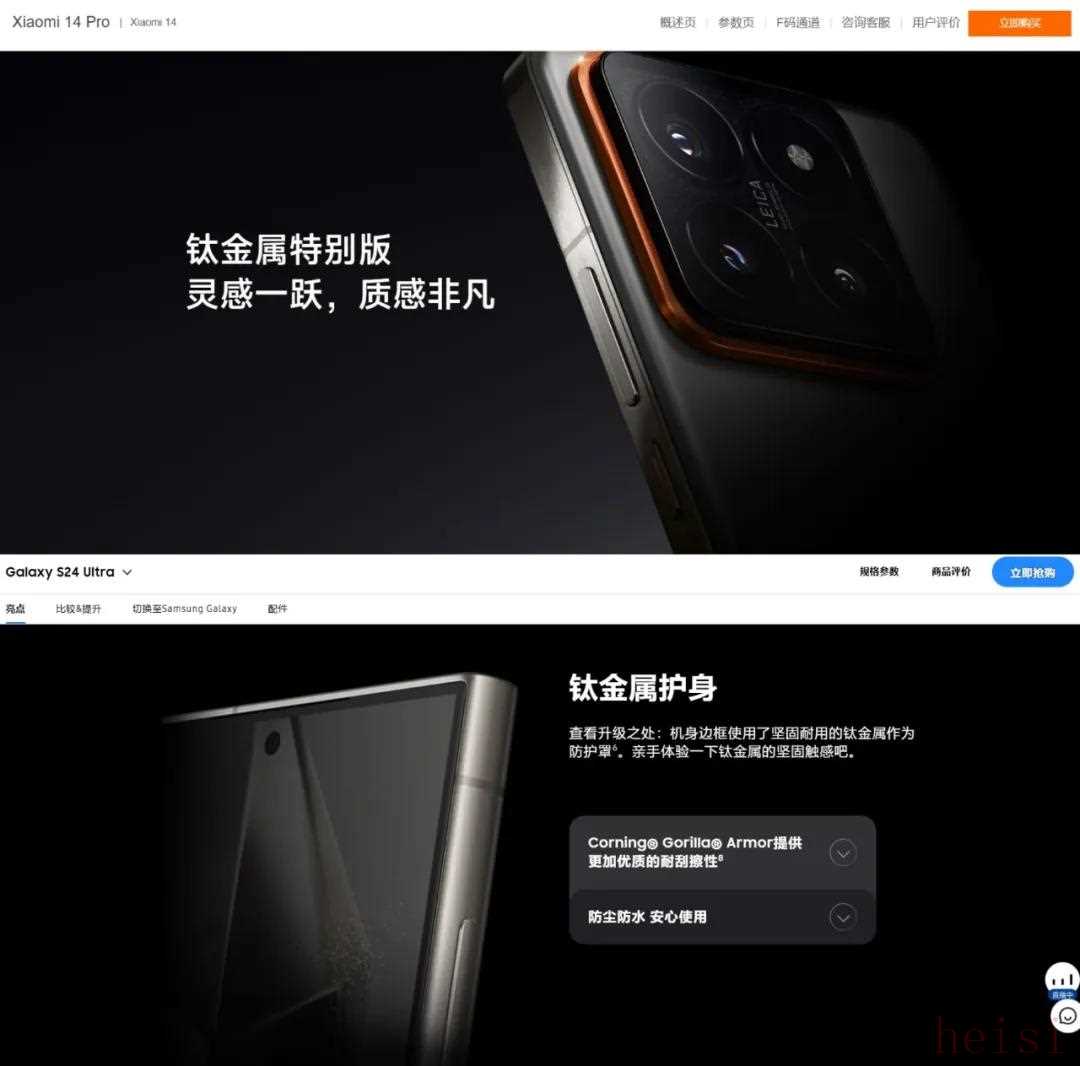 圖源:小米官網(wǎng)(上)、三星官網(wǎng)(下)中產(chǎn)被鈦吸引,源于其兼實用價值和社交屬性。