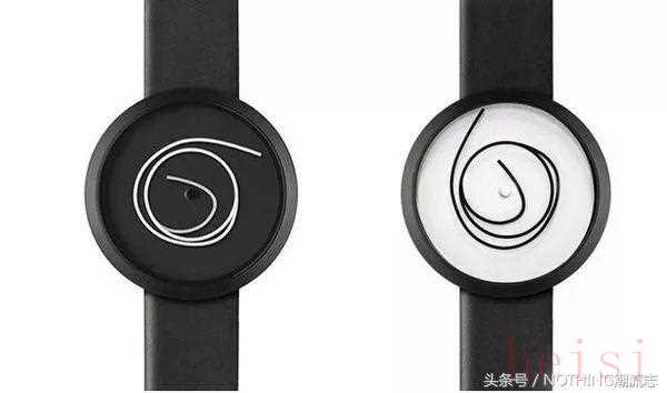 Nava Design的產(chǎn)品中,用曲線表達(dá)時(shí)間的Ora Unica系列最有意思,表盤(pán)設(shè)計(jì)有一條漩渦式彎曲指針, 最里面的那頭表示時(shí)針,最外面就表示分針,絕對(duì)為你賺足眼球。