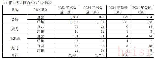 營收增長緩慢的情況下,公司的實體門店整體也在縮減。財報顯示,2024年底,公司各品牌的國內(nèi)實體門店共2235家,同比減少211家。2024年內(nèi),公司總共閉店637家,開店426家。各品牌的營收均同比下滑,其中主品牌奧康營收同比下滑15.82%,毛利率同比減少1.29個百分點。