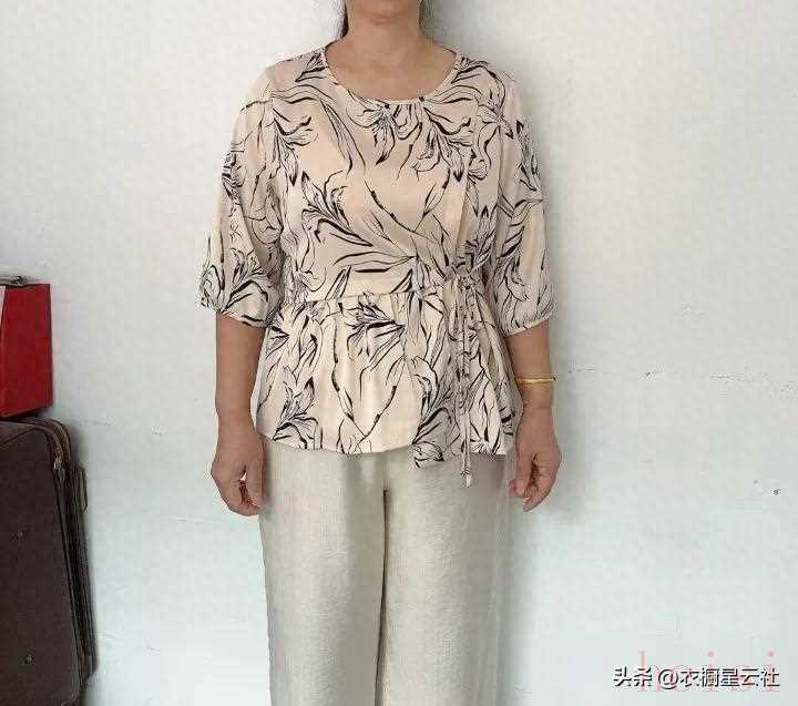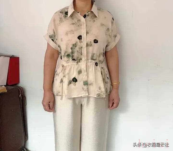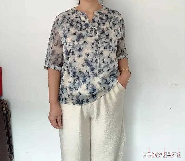 雪紡衫更百搭——墨綠色葉子款配卡其色九分褲,藏住腿粗;藏藍蘭花款配米色A字裙,遮住小肚腩;透袖款配淺粉防曬衣,出門買菜都像去下午茶。