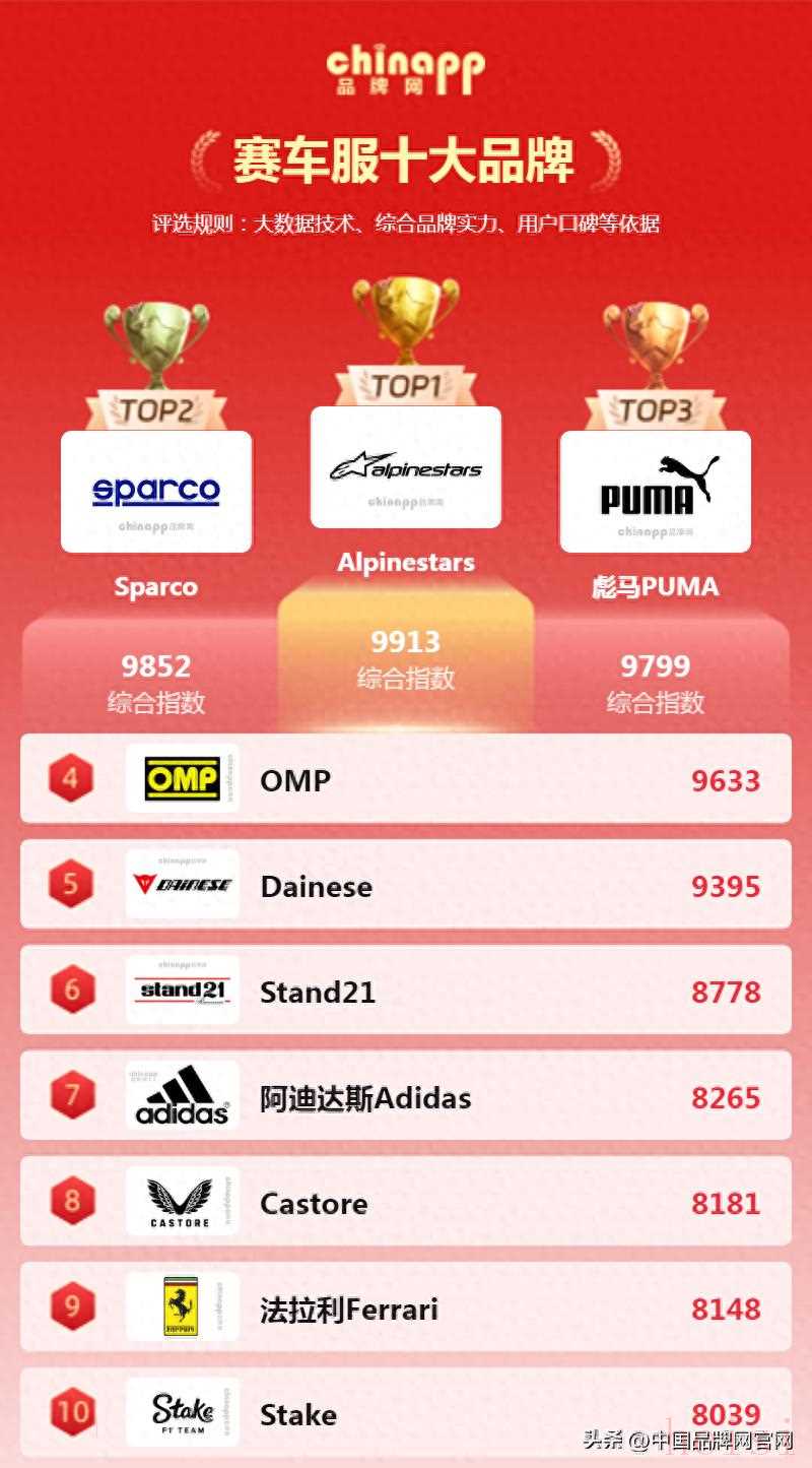 以上就是賽車服品牌,想要了解更多行業(yè)榜單,請聯(lián)系品牌網(wǎng)。