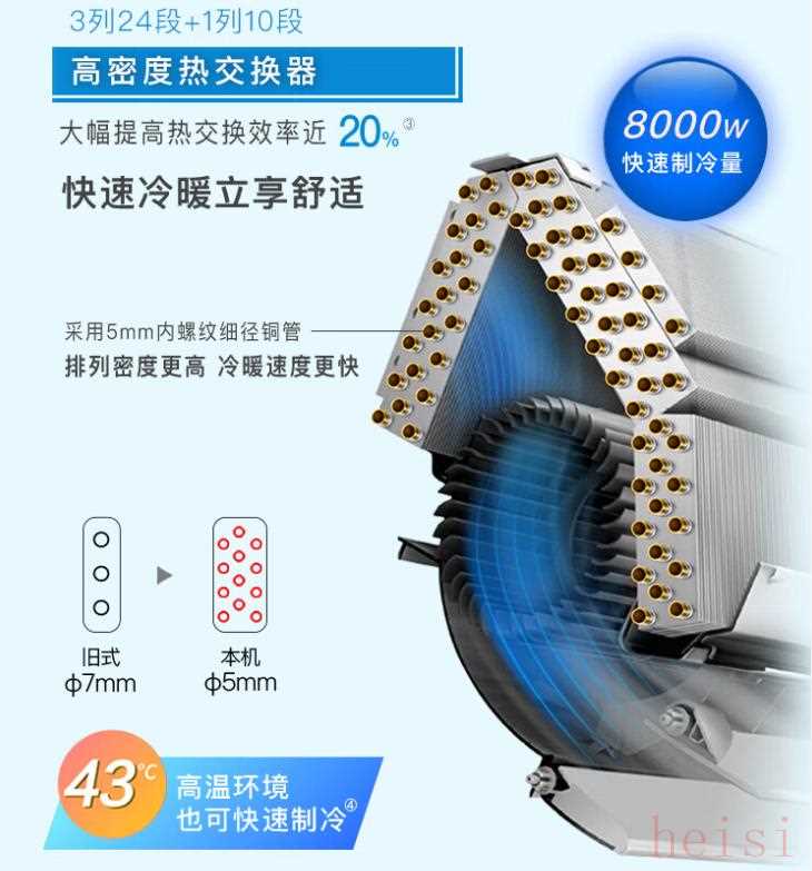 其采用了高密度熱交換器,制冷、制暖更為快速,除濕效果也不錯(cuò)。其支持全方位送風(fēng),提供更大的送風(fēng)范圍。