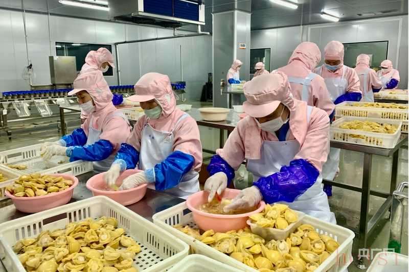 位于莆田市涵江區(qū)的新膳海洋食品生產(chǎn)車(chē)間內(nèi),工人們正在清洗黃金鮑(央廣網(wǎng)記者 羅曉英 攝)