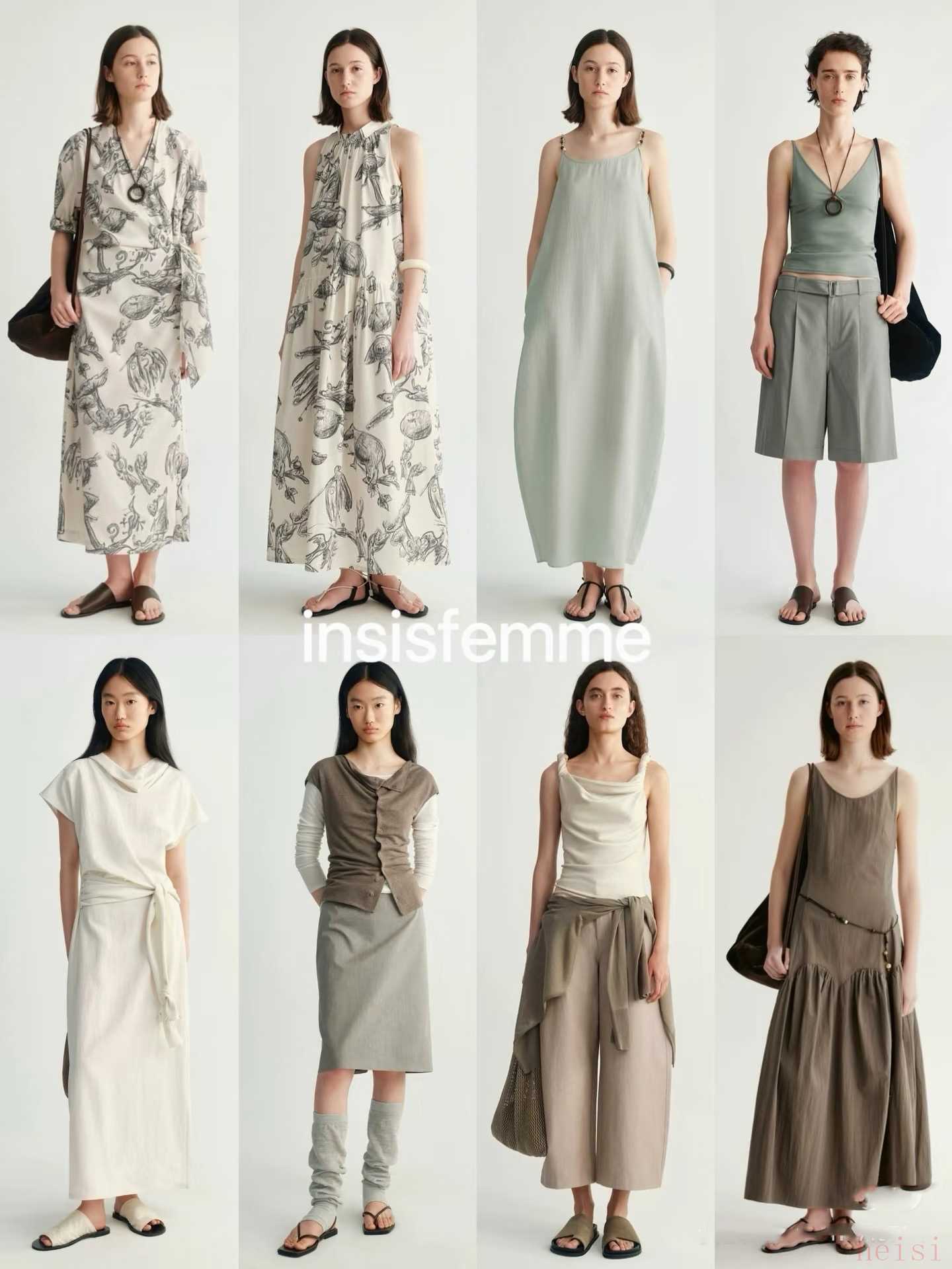 Insis femme是國內(nèi)小眾設(shè)計(jì)師品牌,由主理人徐豆皮于2015年創(chuàng)立。乍一看有點(diǎn)H&M集團(tuán)旗下COS品牌的既視感,剪裁干練利落,將中性北歐風(fēng)、性冷淡風(fēng)演繹得淋漓盡致。