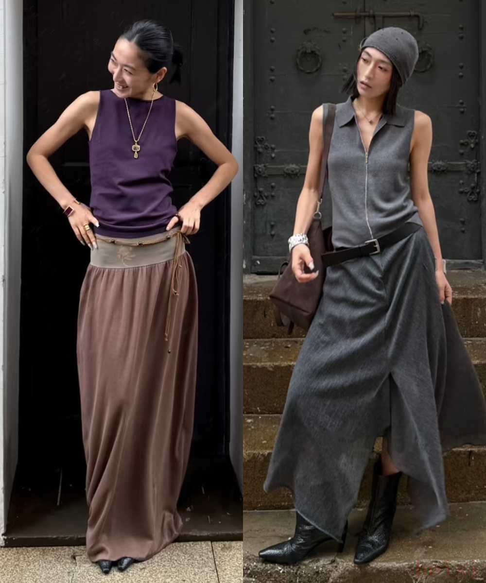 風(fēng)格上也不局限于針織給人“溫柔”的刻板印象,通過干練立體的剪裁和適當(dāng)?shù)穆赌w,增添了幾分酷颯和性感,時(shí)髦得毫不費(fèi)力。