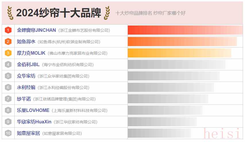 根據(jù)Maigoo發(fā)布的紗簾品牌排行榜,以下是一些知名紗簾品牌名單:
