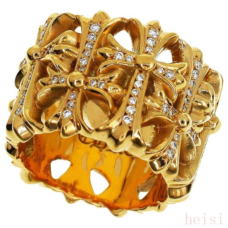 早期應(yīng)用于銀飾產(chǎn)品上的標志性的宗教圖騰設(shè)計,通過黃金和鉆石材質(zhì)呈現(xiàn)在復(fù)古風格的基礎(chǔ)上,也呈現(xiàn)出極為奢華的質(zhì)感。這些產(chǎn)品在定價上從數(shù)萬、十數(shù)萬,甚至上百萬元人民幣不等。