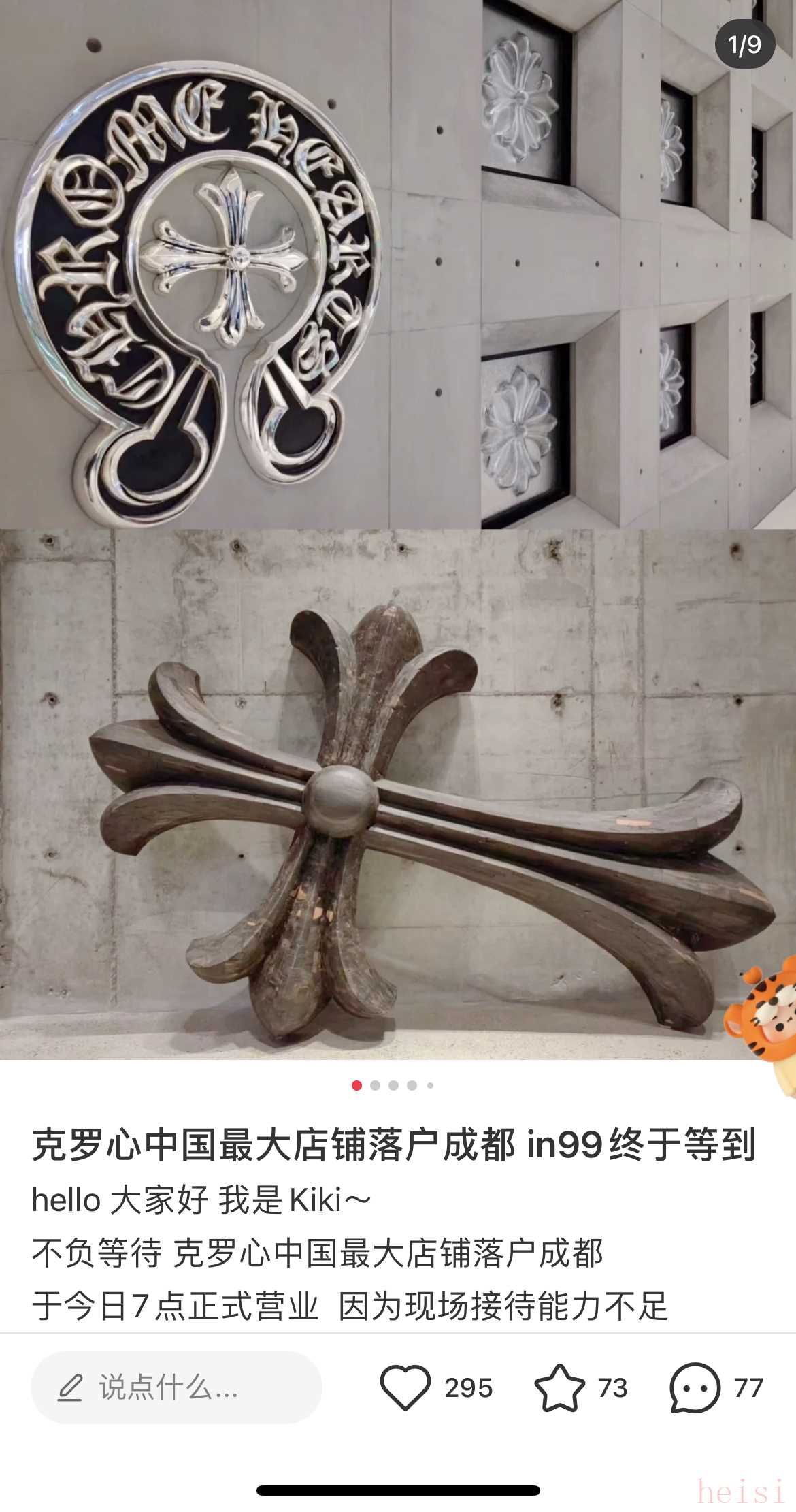 1月22日,來自美國洛杉磯的銀飾潮牌克羅心(Chrome Hearts)在成都銀泰中心in99開設(shè)西南首店,總面積達750平方米。