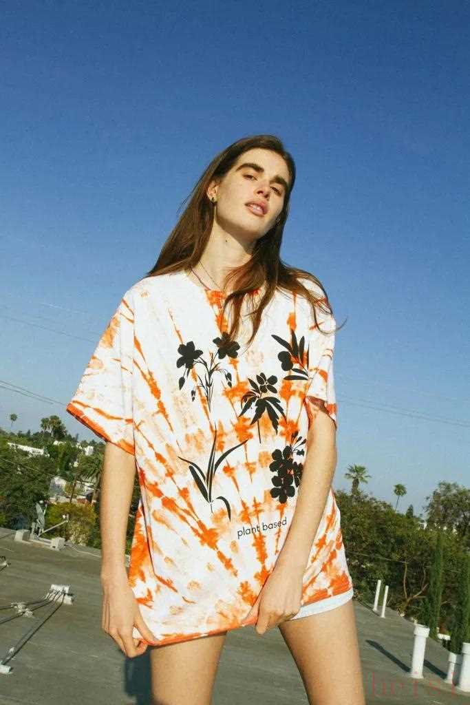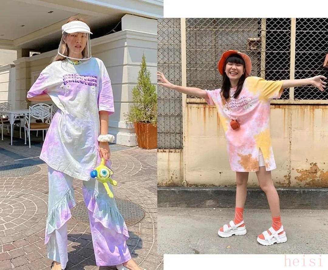 而女孩子們最喜歡玩的“下衣失蹤”style,不妨找件扎染的花朵T恤來完成,更加特別、更加吸睛。