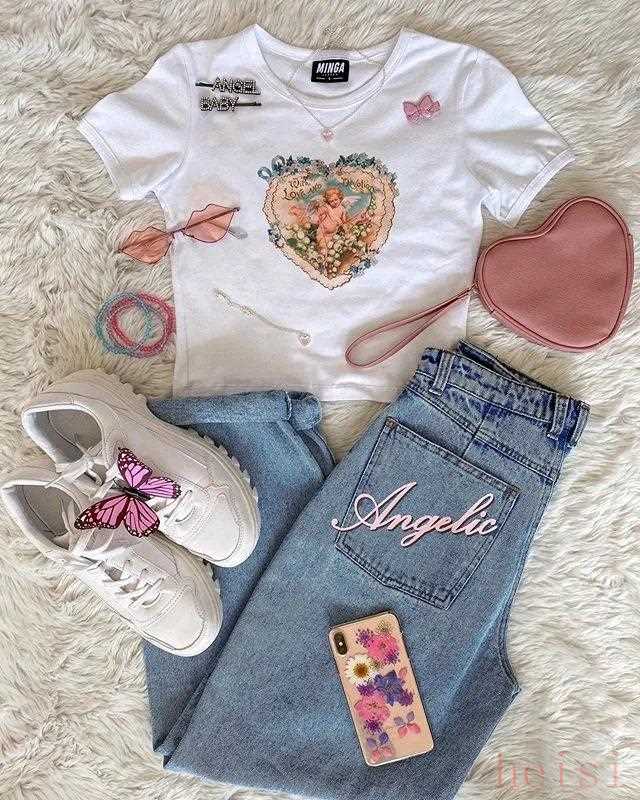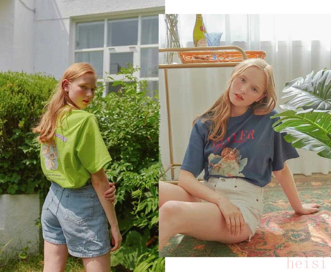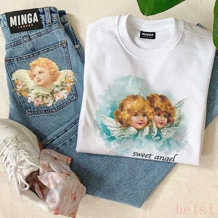 牛仔短褲當(dāng)然沒問題,當(dāng)天使印花遇到復(fù)古淳樸的牛仔藍(lán)后,仿佛回到80年代。