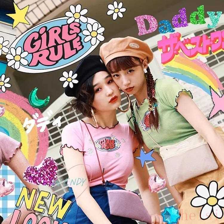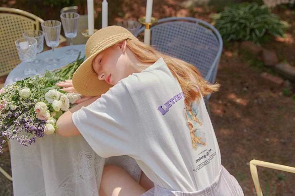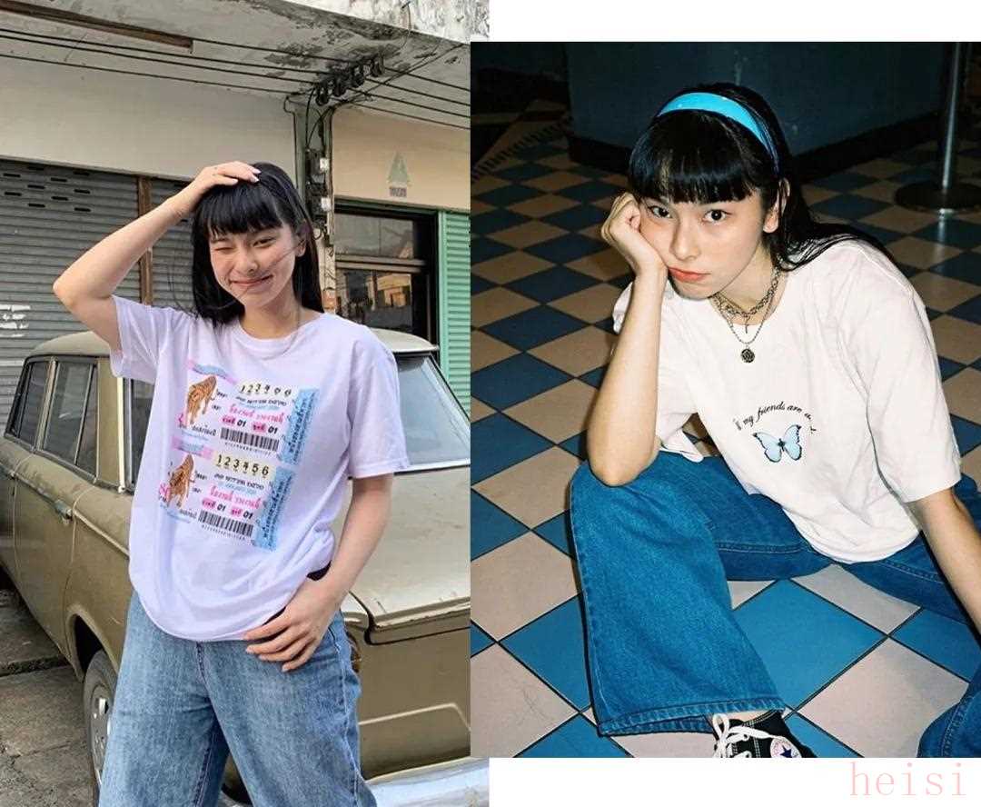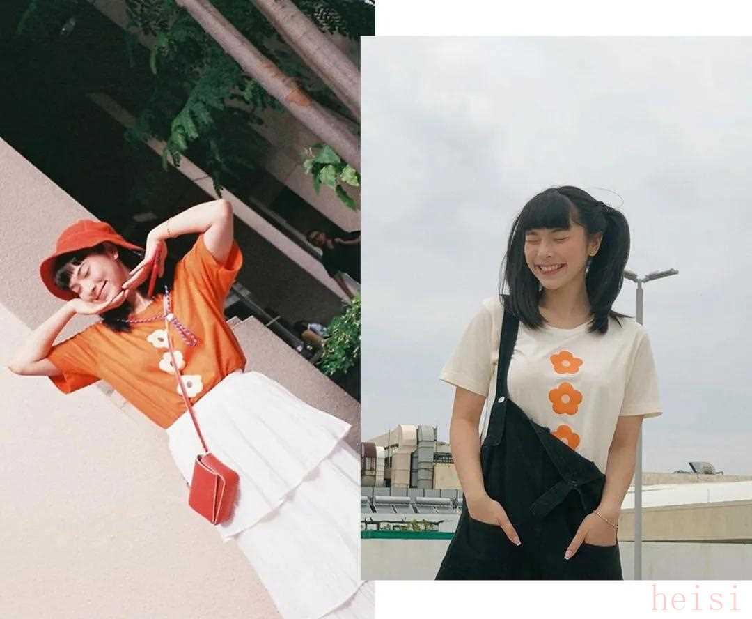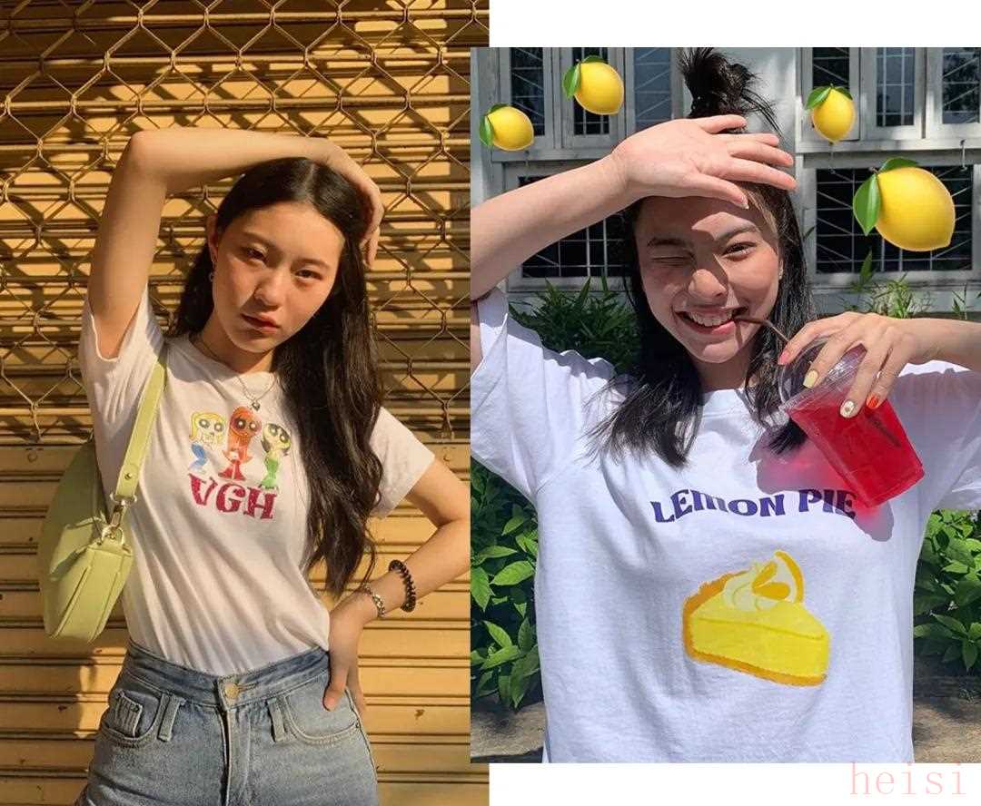 今年的T恤不再是單一的松垮寬松樣式,小巧緊身的木耳邊更加受到少女歡迎。